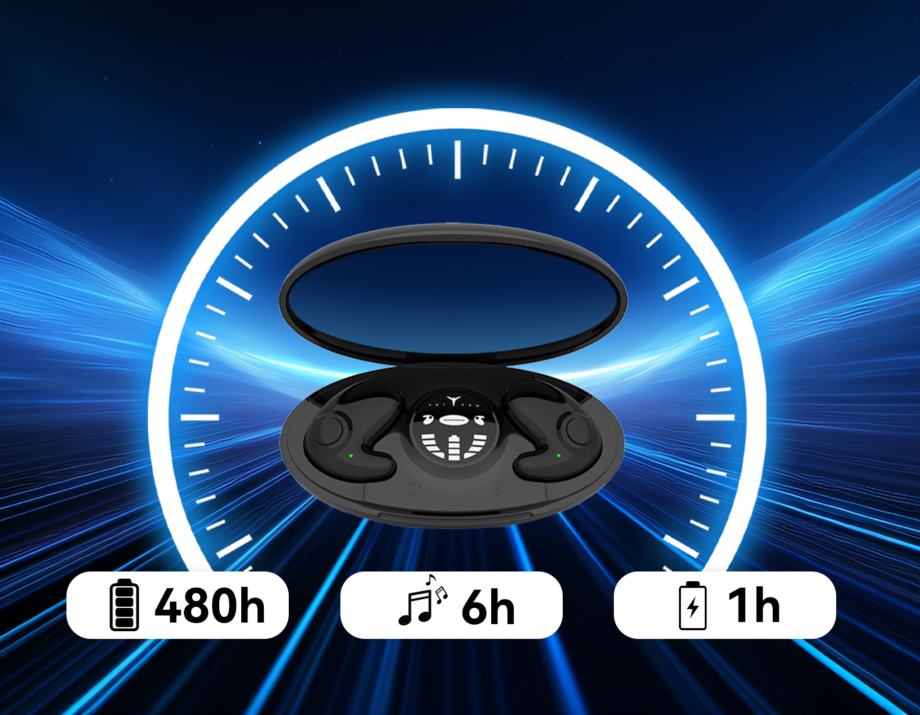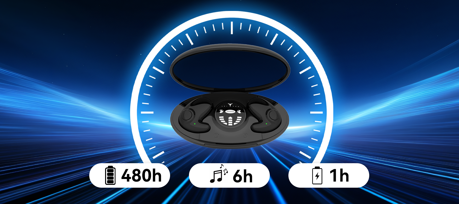 • Long Battery & Charging Case — 24h playtime, 480h standby, fast charging