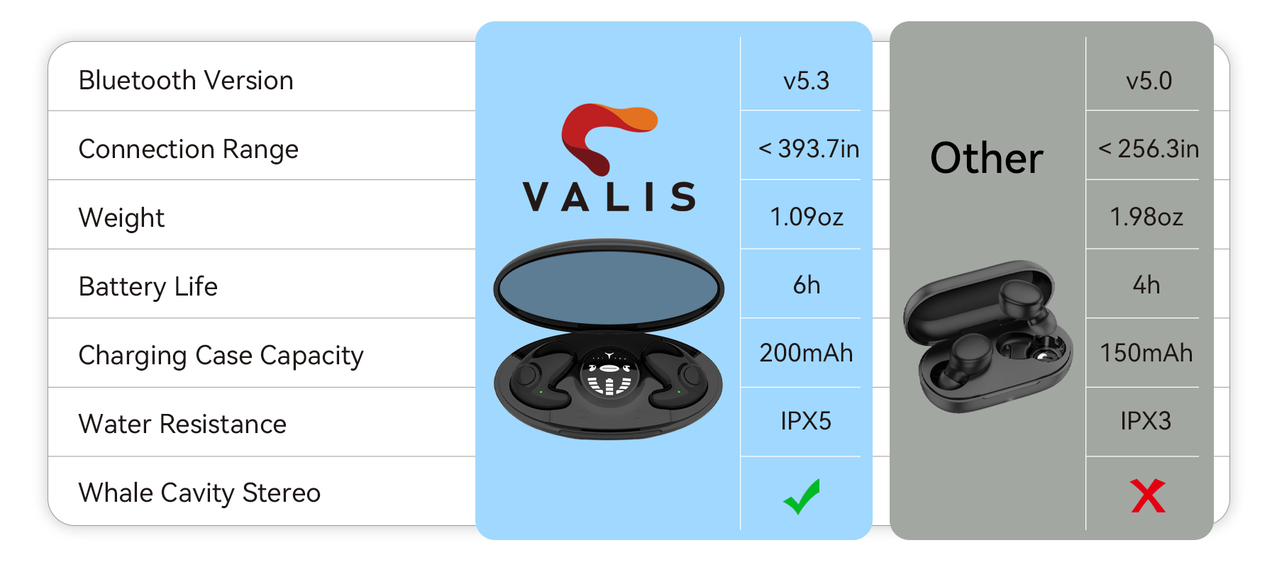 Thanks to the newly upgraded IPX5 waterproof technology, you get professional-grade protection. Whether it's heavy sweat or an unexpected downpour, Valis shrugs off the moisture and splashes. This guarantees high durability, allowing you to wear them confidently in any environment and continuously enjoy a pure audio experience.
